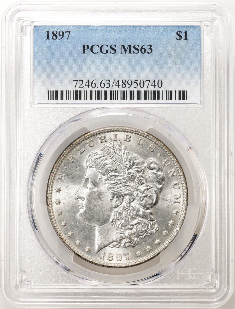 One 1897 $1 Morgan Silver Dollar Coin PCGS MS63. PCGS Graded.