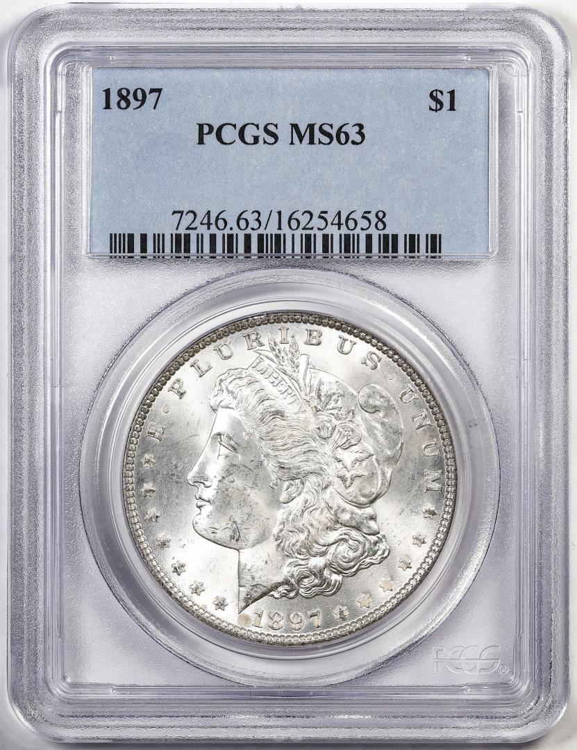 One 1897 $1 Morgan Silver Dollar Coin PCGS MS63. PCGS Graded.