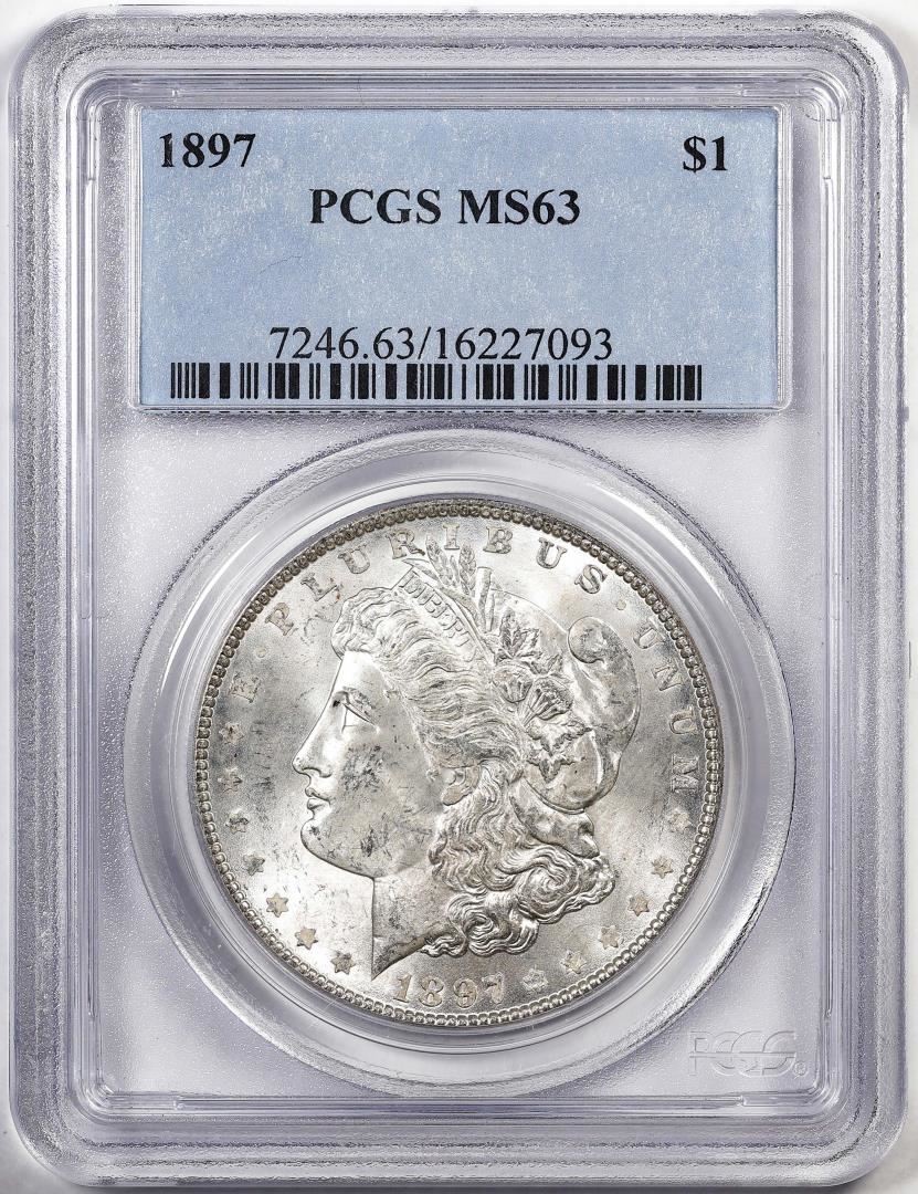 One 1897 $1 Morgan Silver Dollar Coin PCGS MS63. PCGS Graded.