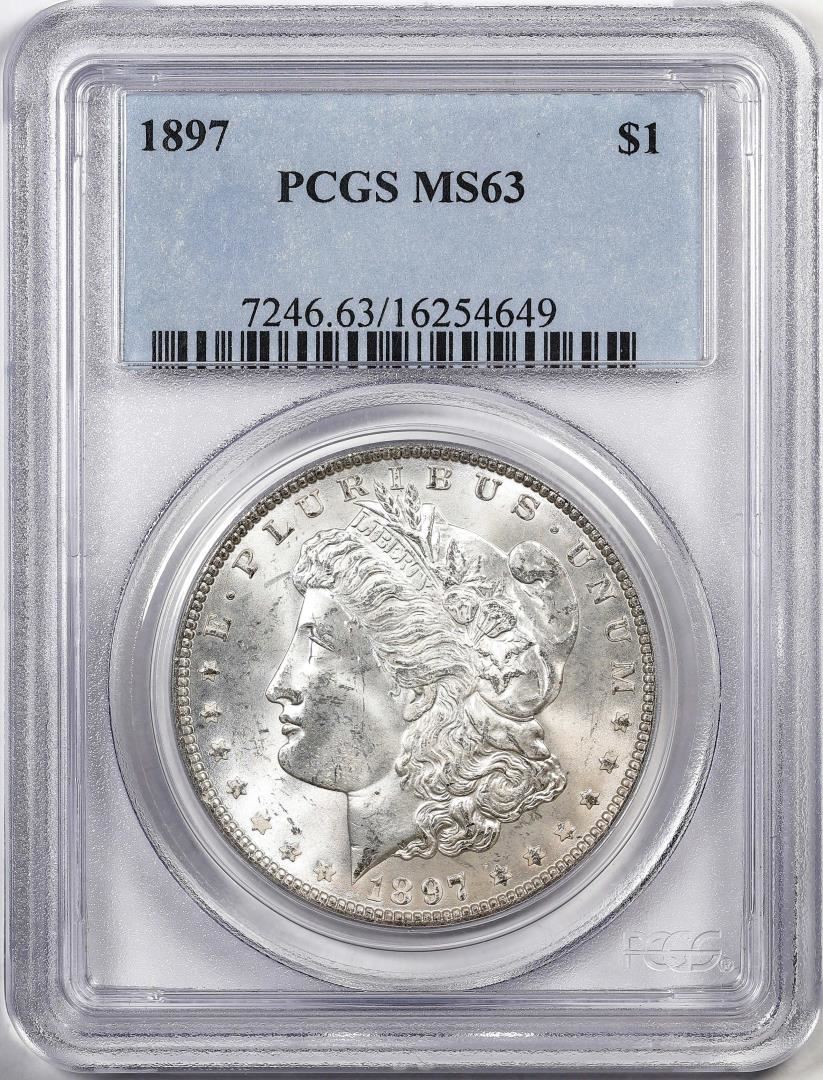 One 1897 $1 Morgan Silver Dollar Coin PCGS MS63. PCGS Graded.