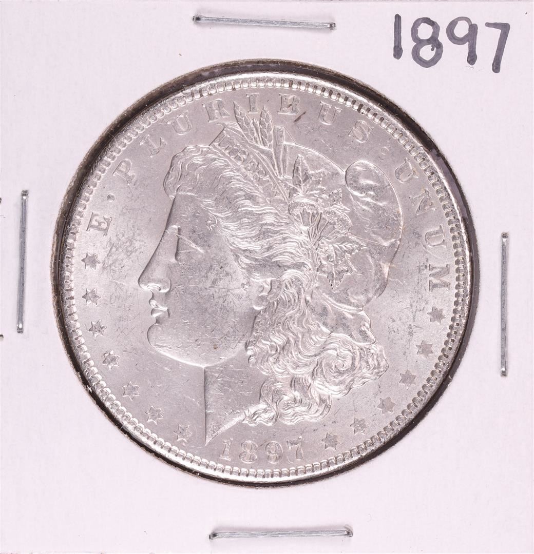 One 1897 $1 Morgan Silver Dollar Coin.