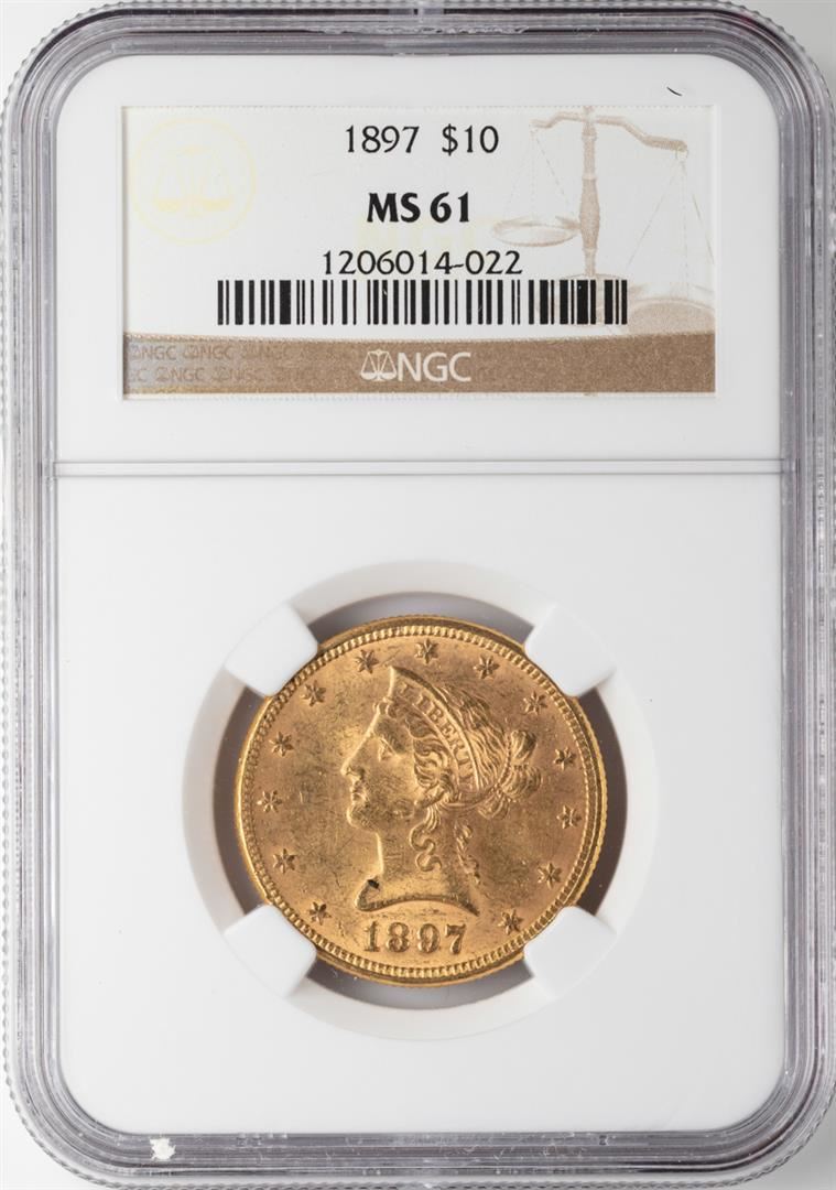 One 1897 $10 Liberty Head Eagle Gold Coin NGC MS61. NGC Certified.
