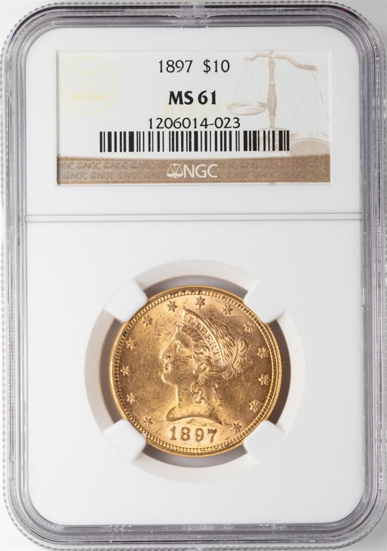 One 1897 $10 Liberty Head Eagle Gold Coin NGC MS61. NGC Certified.