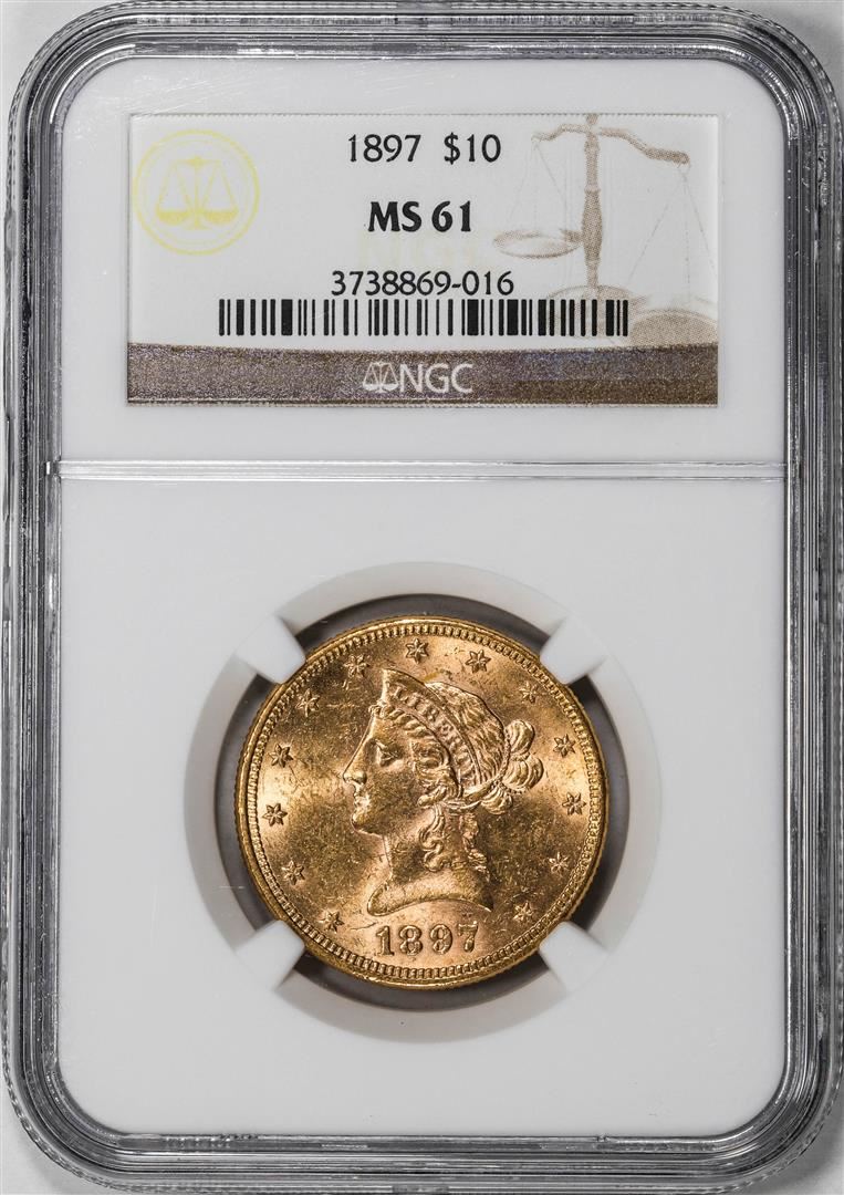 One 1897 $10 Liberty Head Eagle Gold Coin NGC MS61. NGC Certified.