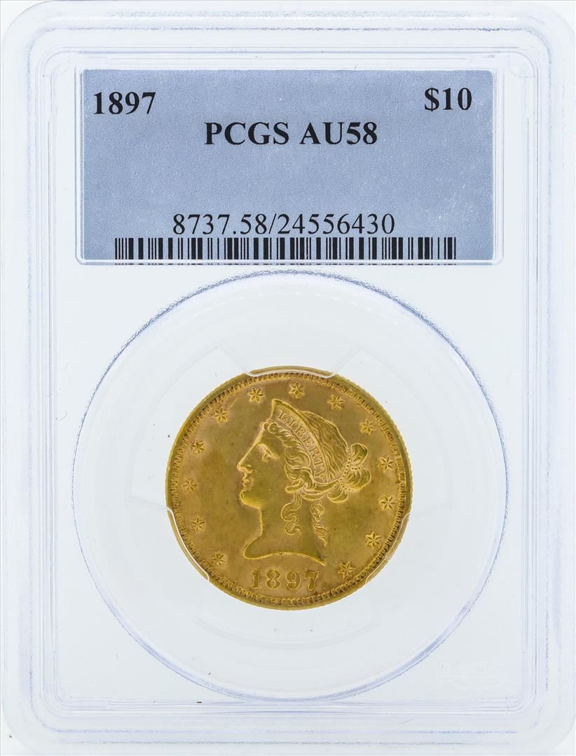 One 1897 $10 Liberty Head Eagle Gold Coin PCGS AU58. PCGS Graded.