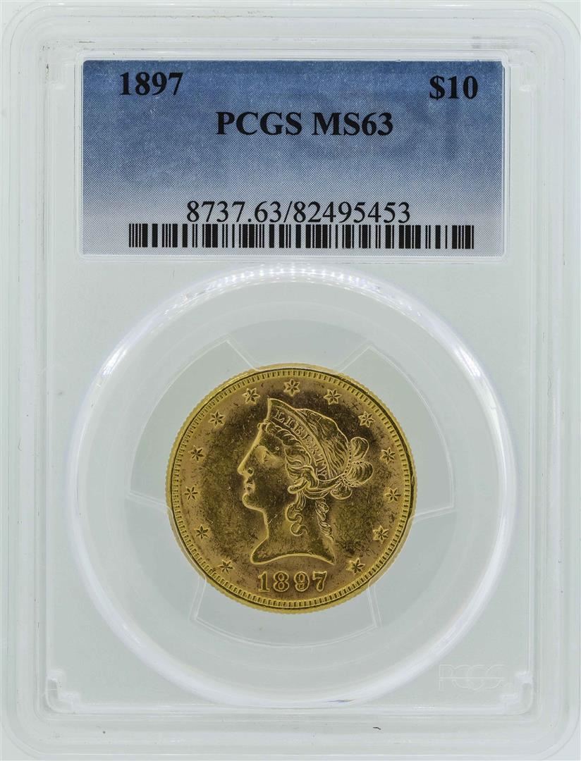 One 1897 $10 Liberty Head Eagle Gold Coin PCGS MS63. PCGS Graded.