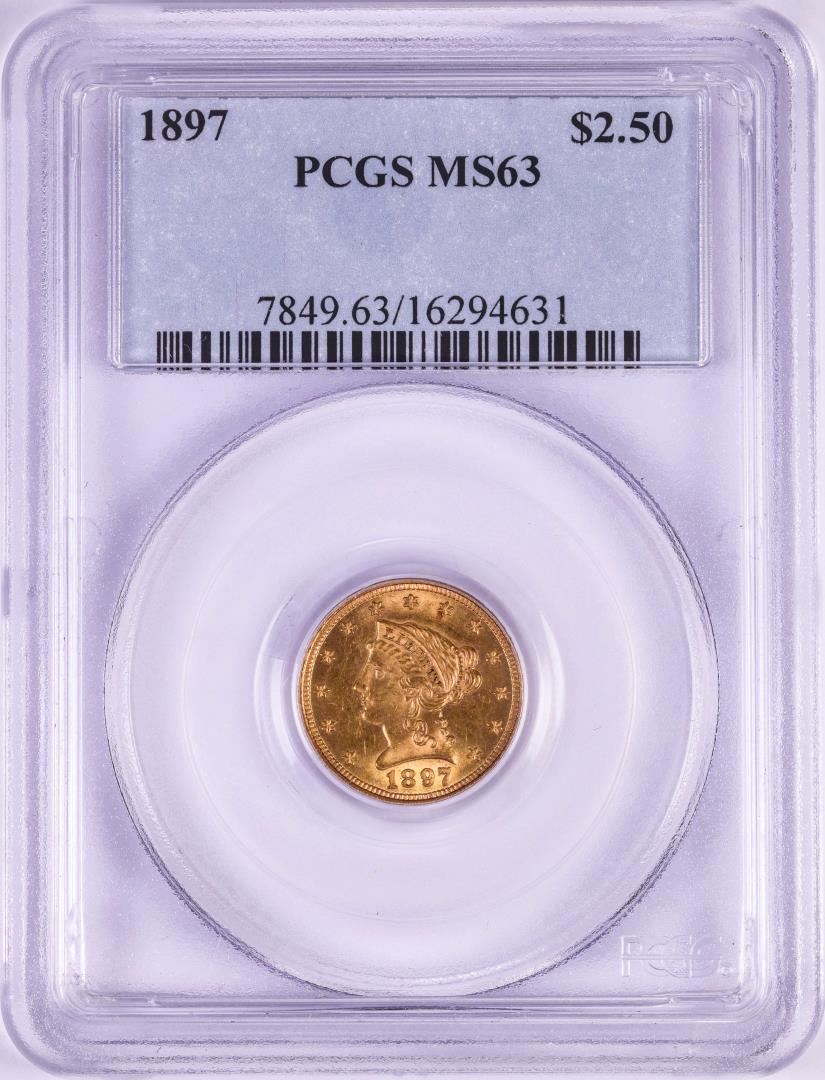 One 1897 $2 1/2 Liberty Head Quarter Eagle Gold Coin PCGS MS63. PCGS Graded.