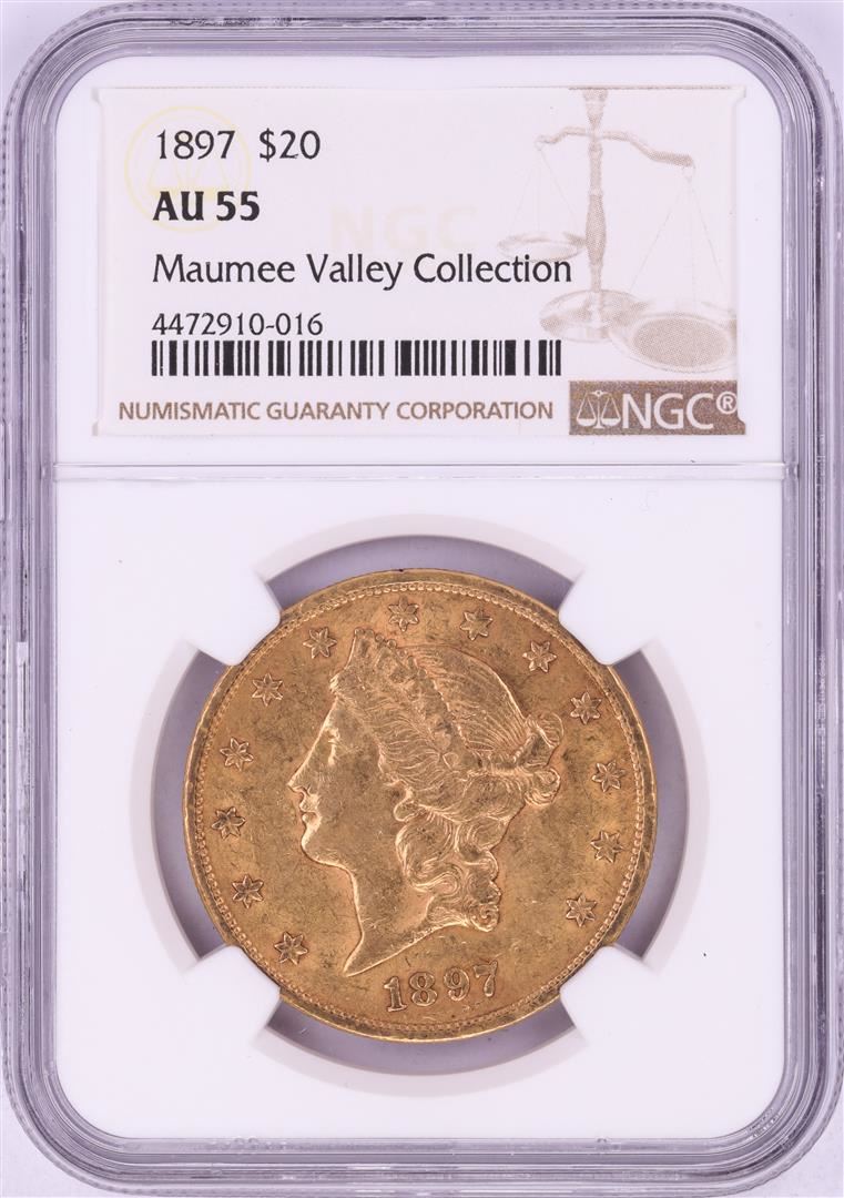 One 1897 $20 Liberty Head Double Eagle Gold Coin NGC AU55. NGC Certified.