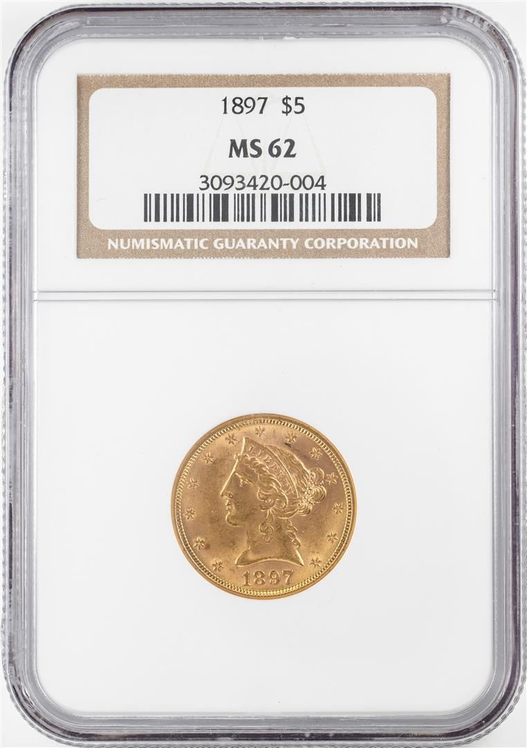 One 1897 $5 Liberty Head Half Eagle Gold Coin NGC MS62. NGC Certified.