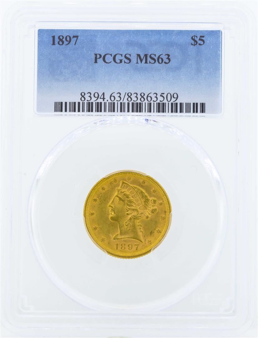One 1897 $5 Liberty Head Half Eagle Gold Coin PCGS MS63. PCGS Graded.