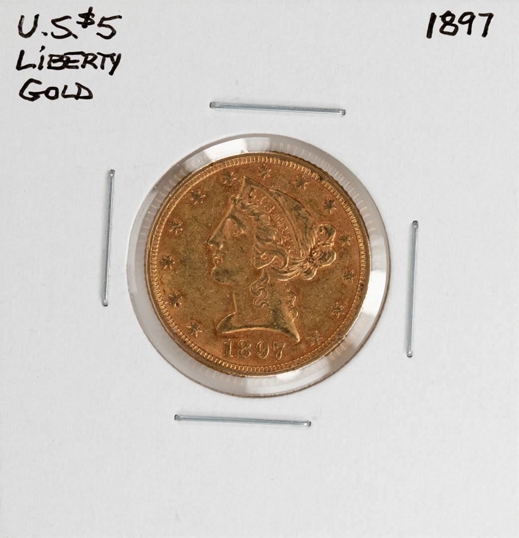 One 1897 $5 Liberty Head Half Eagle Gold Coin.