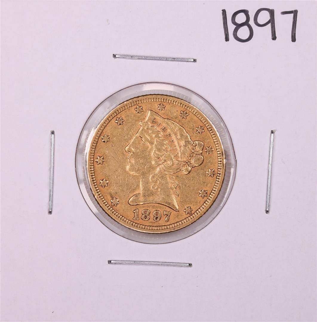 One 1897 $5 Liberty Head Half Eagle Gold Coin.