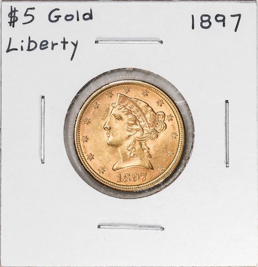 One 1897 $5 Liberty Head Half Eagle Gold Coin.
