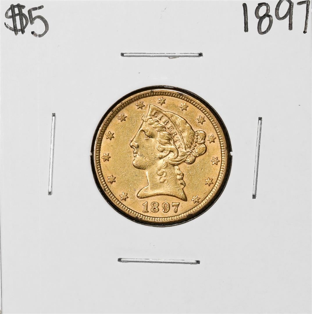 One 1897 $5 Liberty Head Half Eagle Gold Coin.
