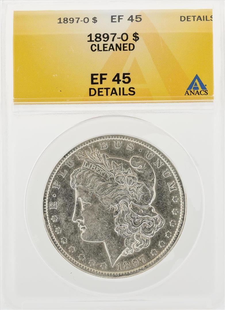 One 1897-O $1 Morgan Silver Dollar Coin Cleaned ANACS EF45 Details. ANACS Certified.