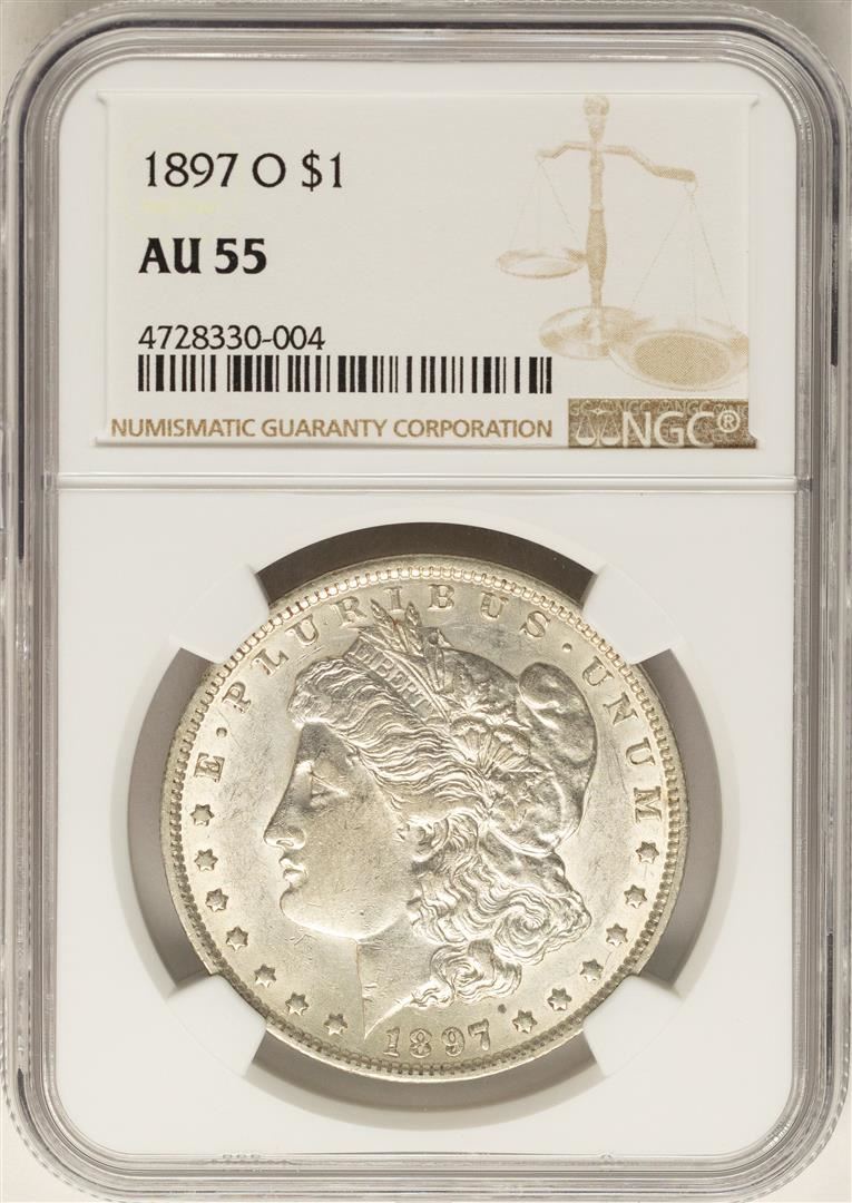 One 1897-O $1 Morgan Silver Dollar Coin NGC AU55. NGC Certified.