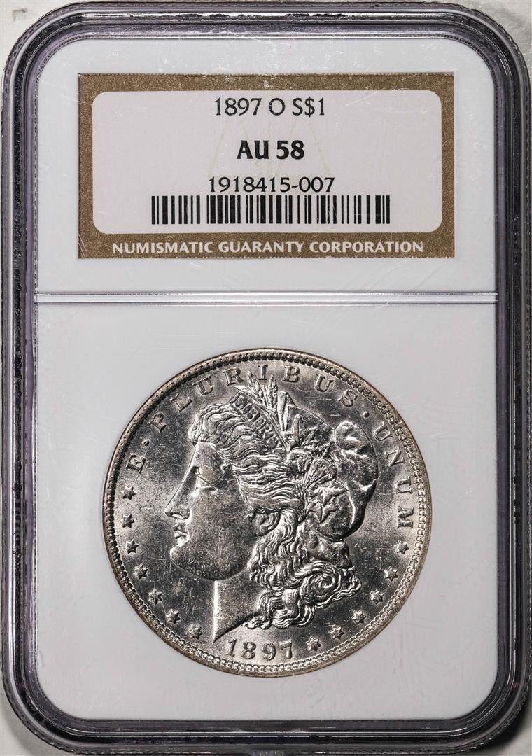One 1897-O $1 Morgan Silver Dollar Coin NGC AU58. NGC Certified.