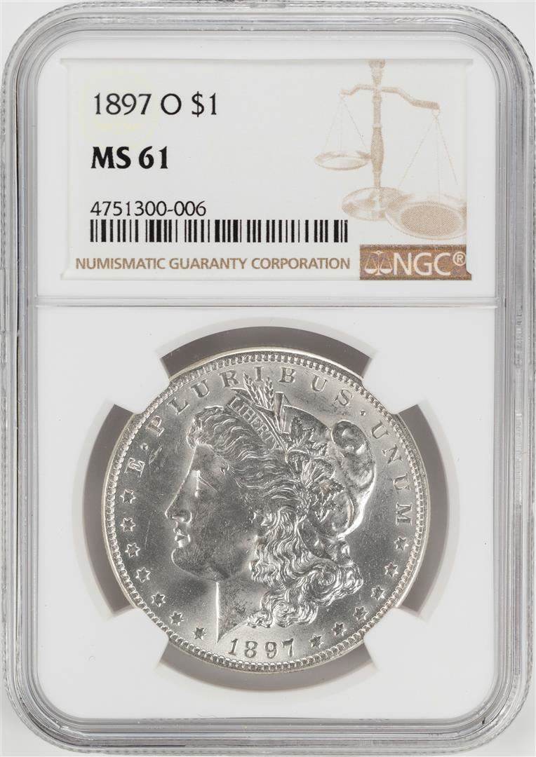 One 1897-O $1 Morgan Silver Dollar Coin NGC MS61. NGC Certified.