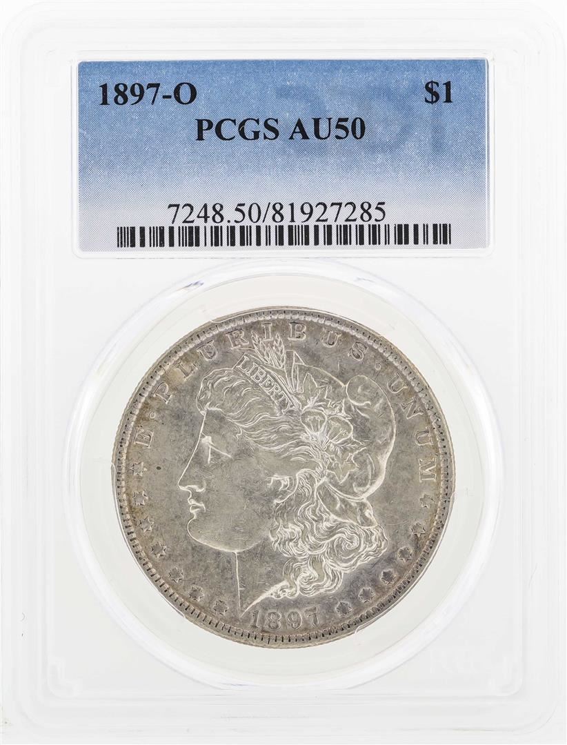 One 1897-O $1 Morgan Silver Dollar Coin PCGS AU50. PCGS Graded.