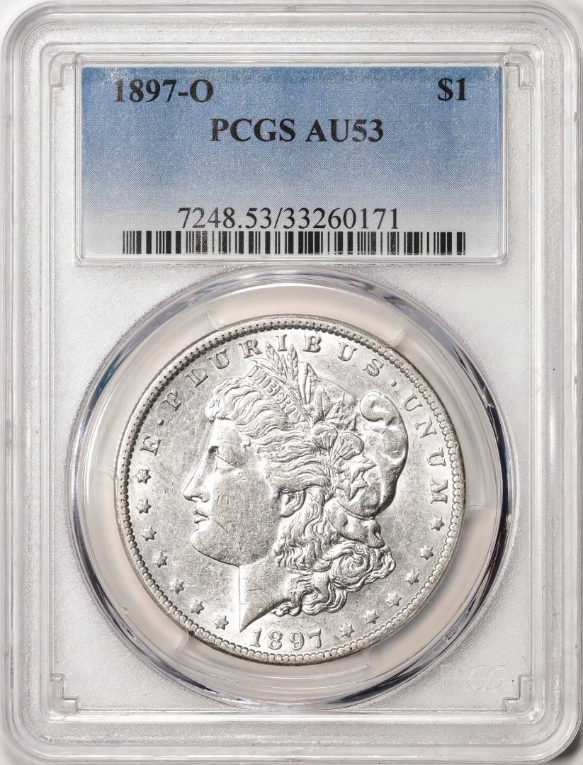 One 1897-O $1 Morgan Silver Dollar Coin PCGS AU53. PCGS Graded.