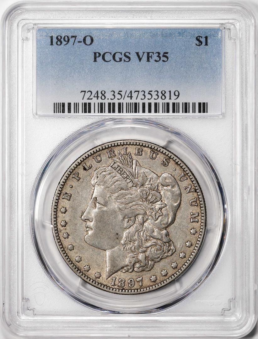 One 1897-O $1 Morgan Silver Dollar Coin PCGS VF35. PCGS Graded.