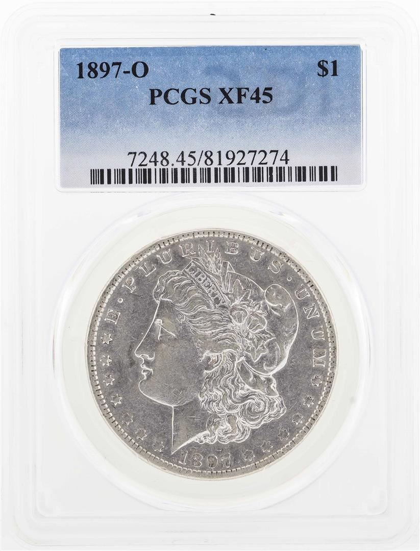 One 1897-O $1 Morgan Silver Dollar Coin PCGS XF45. PCGS Graded.