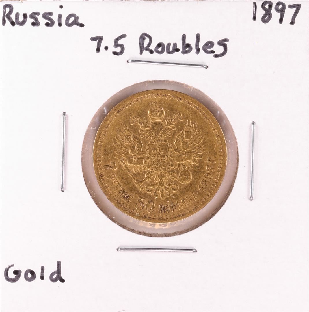 One 1897 Russia 7.5 Roubles Gold Coin.