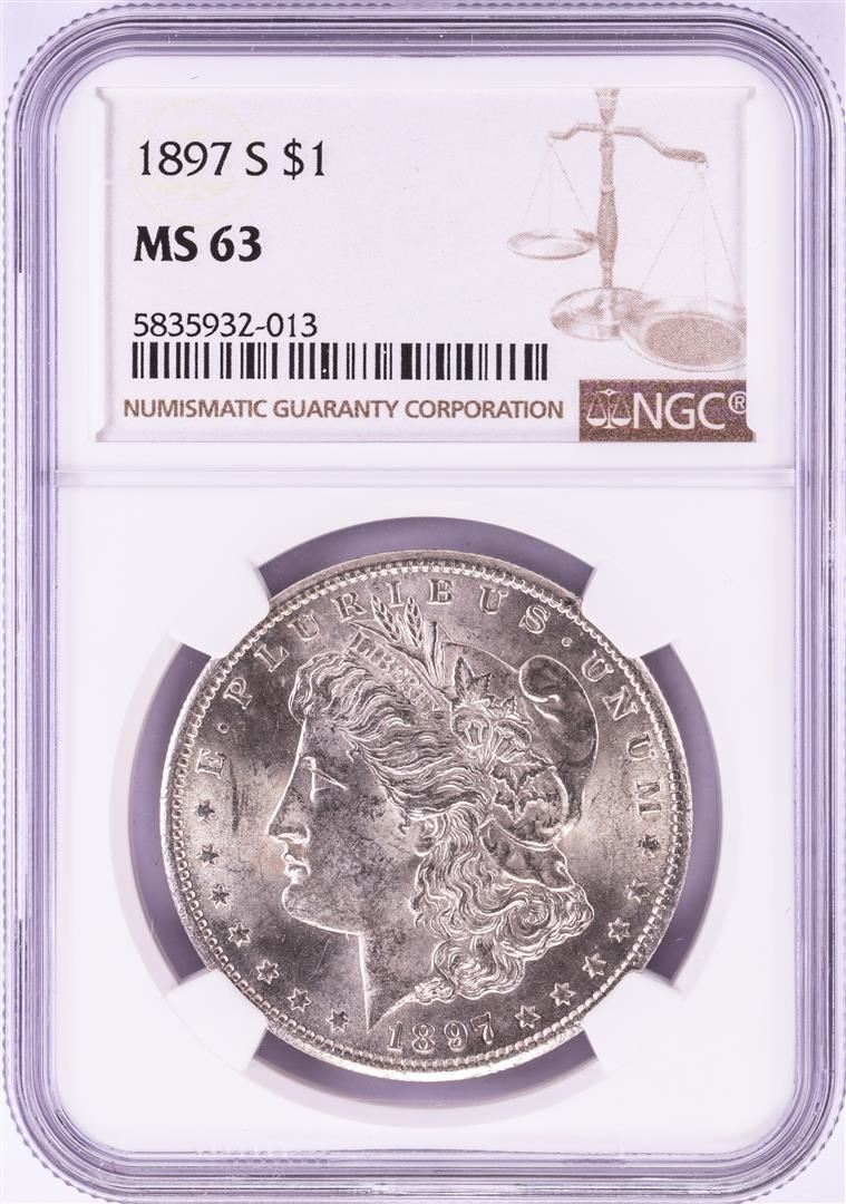 One 1897-S $1 Morgan Silver Dollar Coin NGC MS63. NGC Certified.
