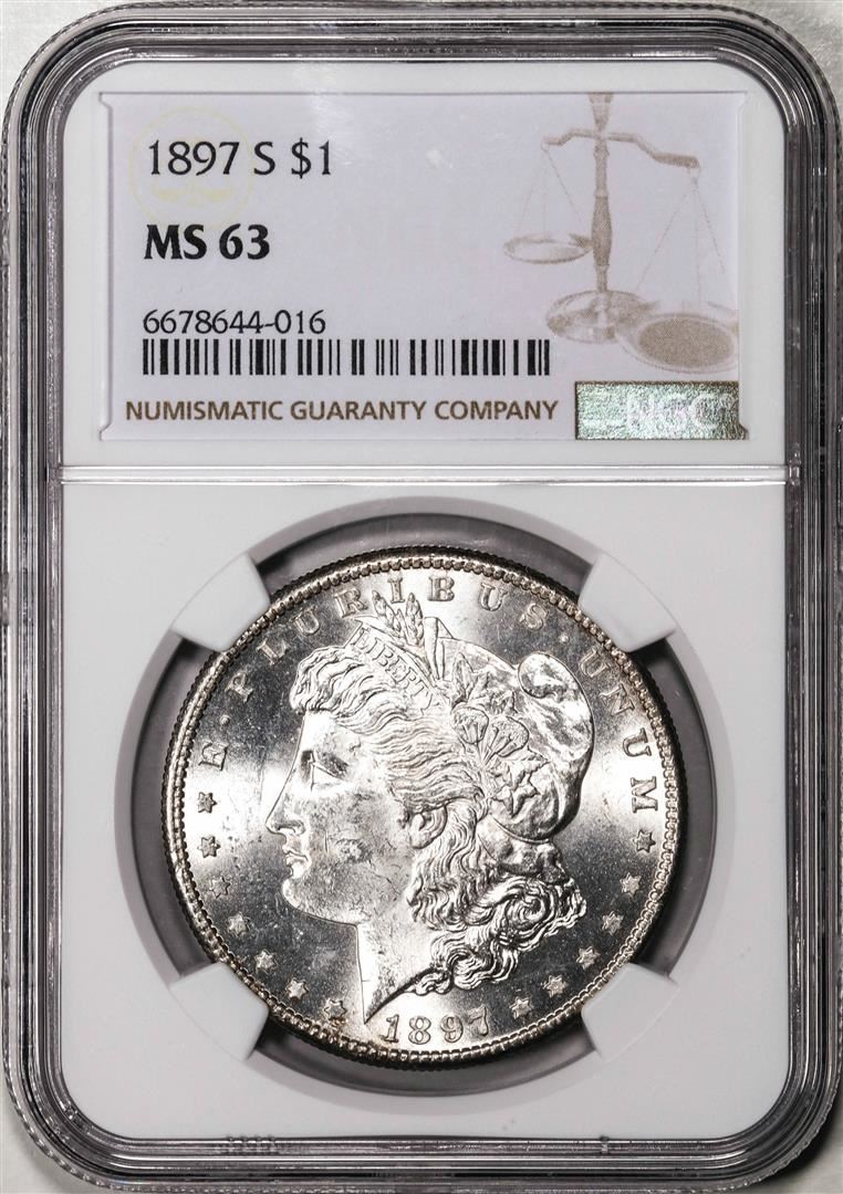 One 1897-S $1 Morgan Silver Dollar Coin NGC MS63. NGC Certified.