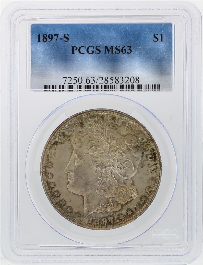 One 1897-S $1 Morgan Silver Dollar Coin PCGS Graded MS63. PCGS Graded.