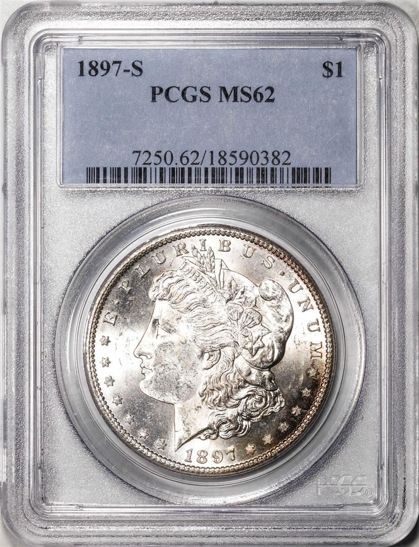 One 1897-S $1 Morgan Silver Dollar Coin PCGS MS62. PCGS Graded.