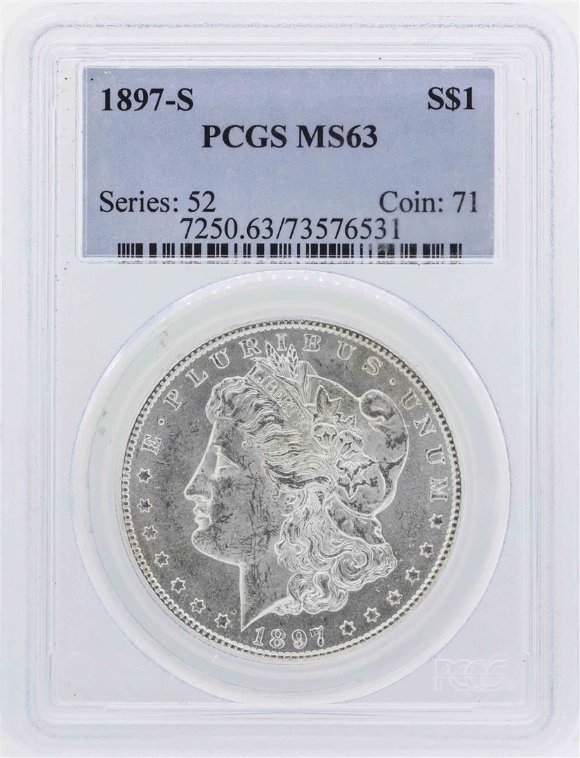 One 1897-S $1 Morgan Silver Dollar Coin PCGS MS63. PCGS Graded.