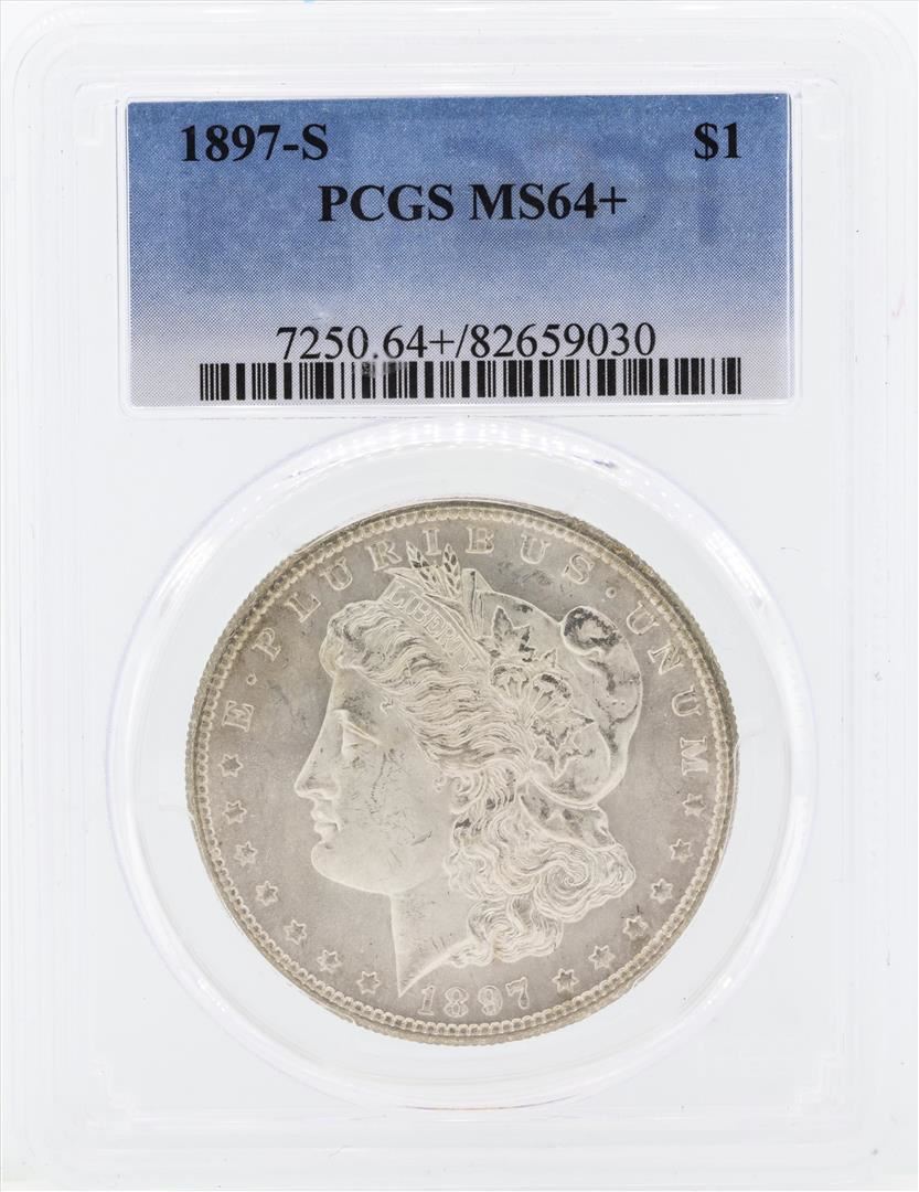 One 1897-S $1 Morgan Silver Dollar Coin PCGS MS64+. PCGS Graded.