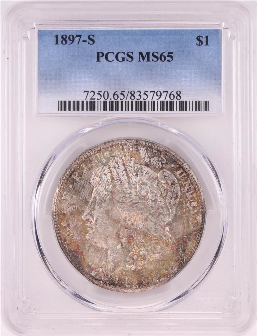 One 1897-S $1 Morgan Silver Dollar Coin PCGS MS65. PCGS Graded.