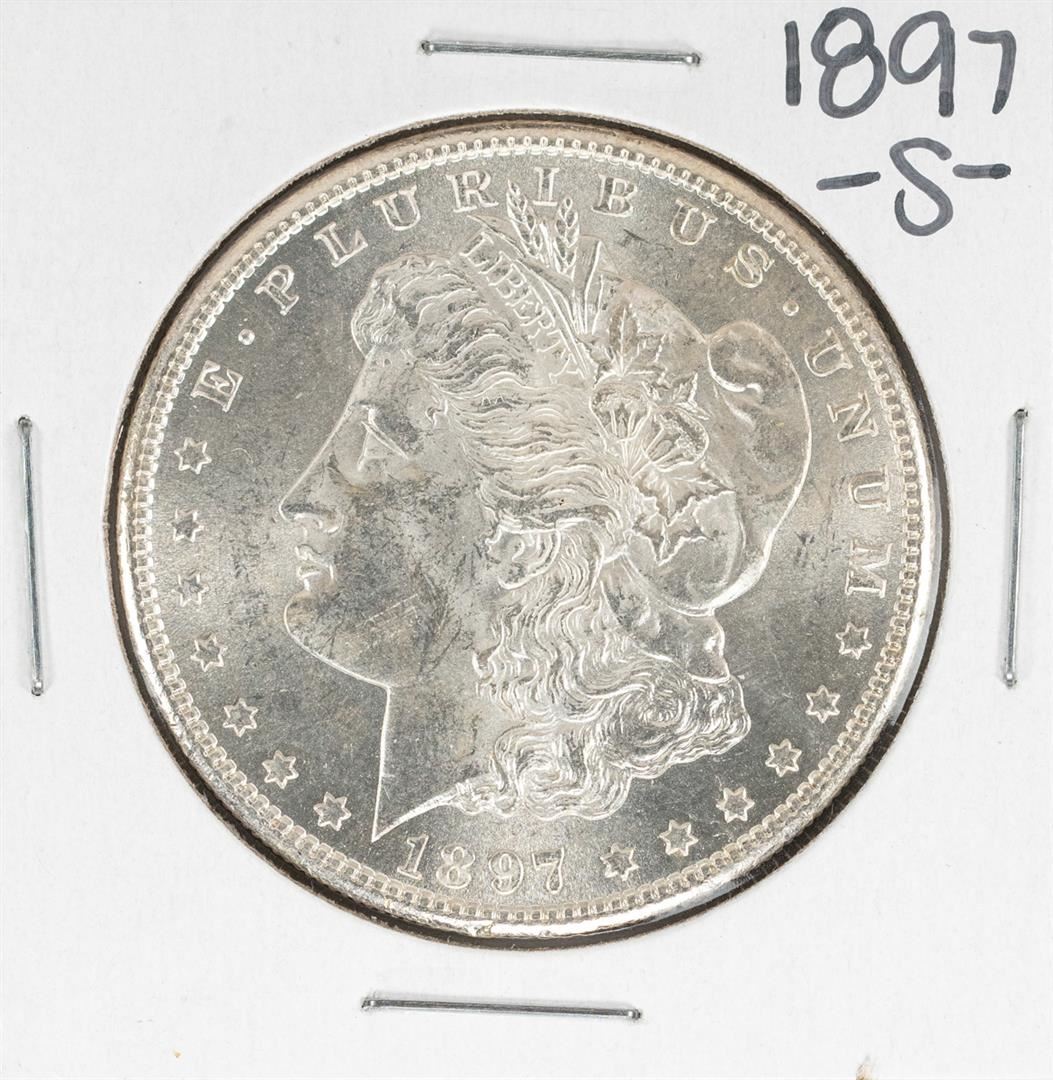 One 1897-S $1 Morgan Silver Dollar Coin.