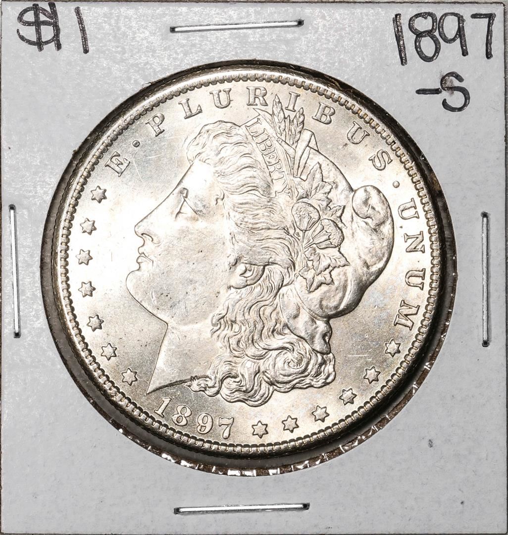 One 1897-S $1 Morgan Silver Dollar Coin.