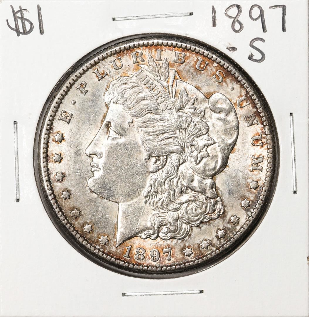 One 1897-S $1 Morgan Silver Dollar Coin.