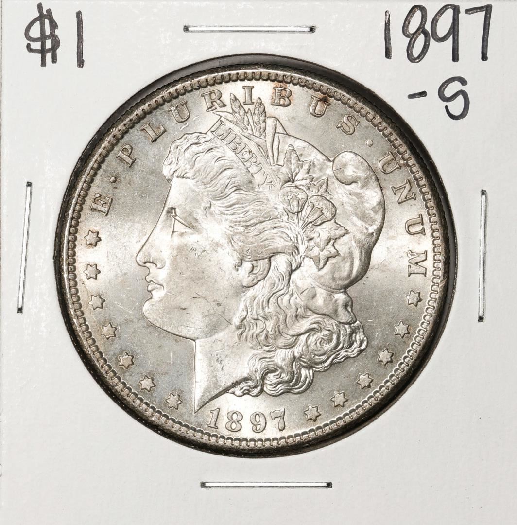 One 1897-S $1 Morgan Silver Dollar Coin.