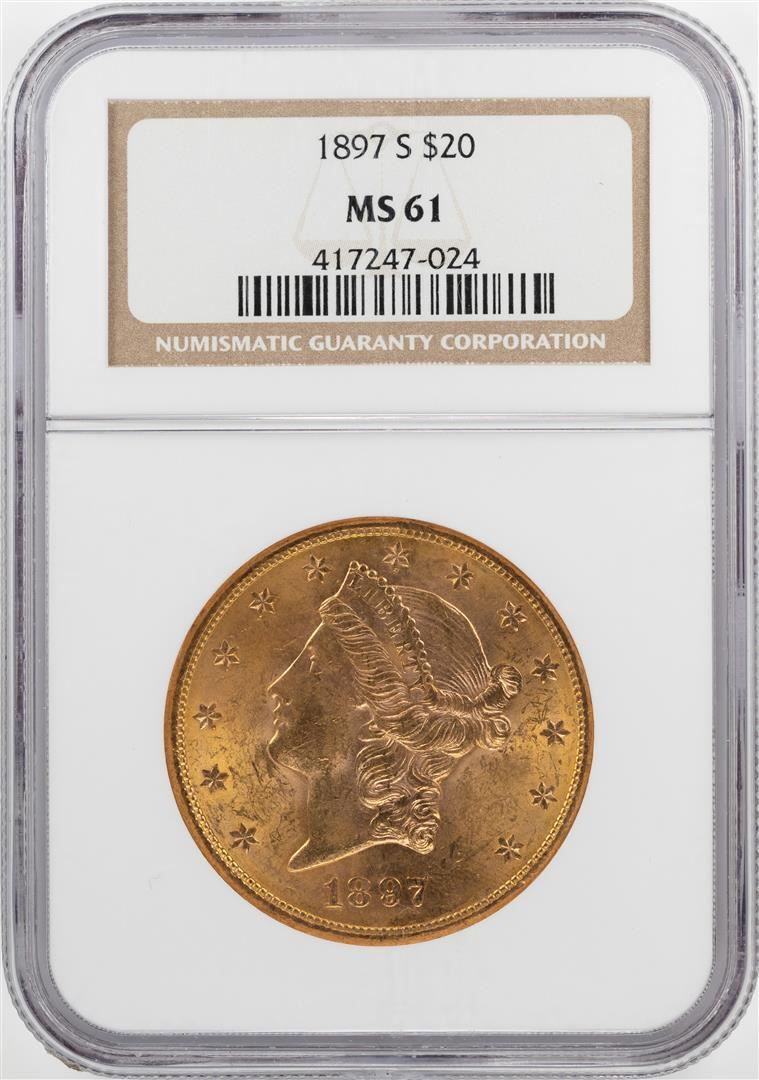 One 1897-S $20 Liberty Head Double Eagle Gold Coin NGC MS61. NGC Certified.