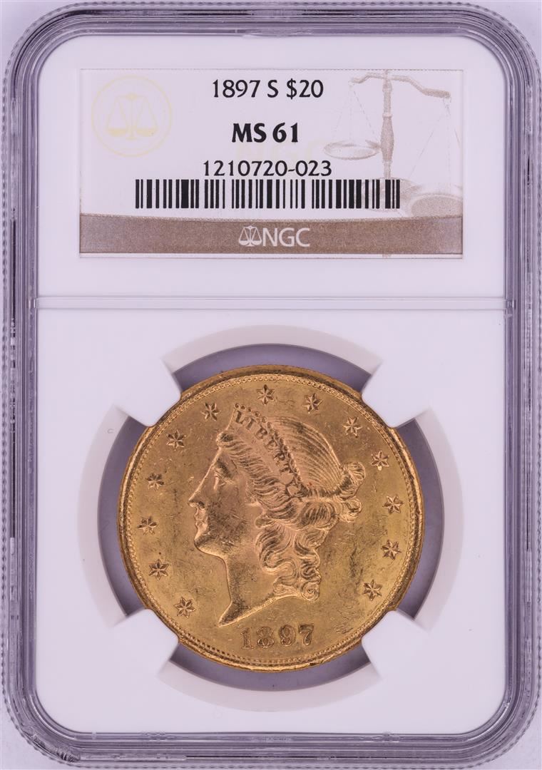 One 1897-S $20 Liberty Head Double Eagle Gold Coin NGC MS61. NGC Certified.
