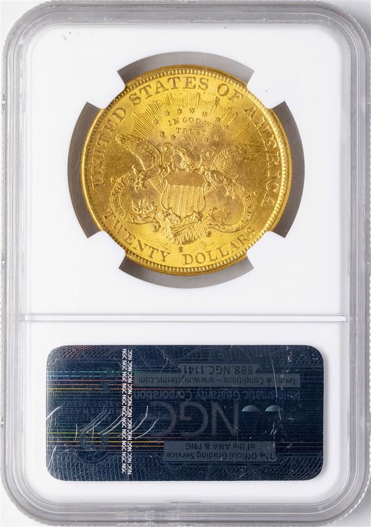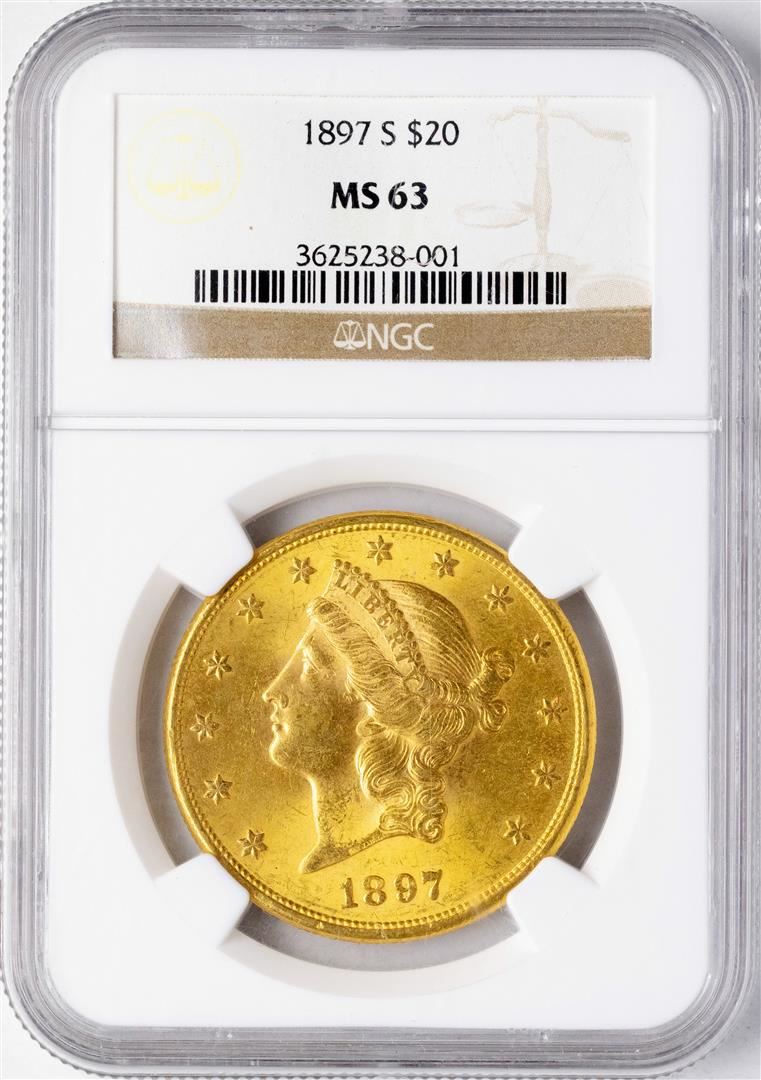 One 1897-S $20 Liberty Head Double Eagle Gold Coin NGC MS63. NGC Certified.