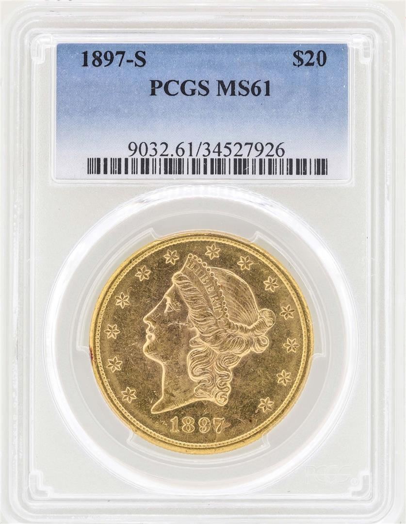One 1897-S $20 Liberty Head Double Eagle Gold Coin PCGS MS61. PCGS Graded.