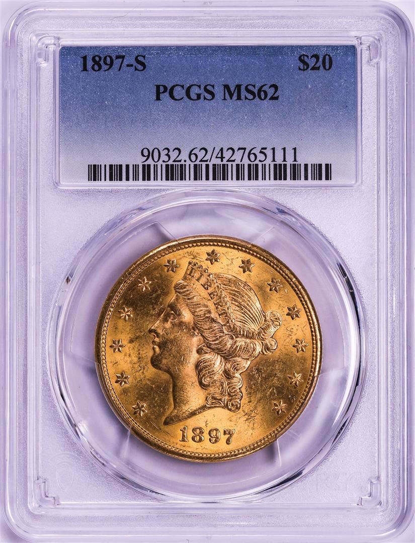 One 1897-S $20 Liberty Head Double Eagle Gold Coin PCGS MS62.