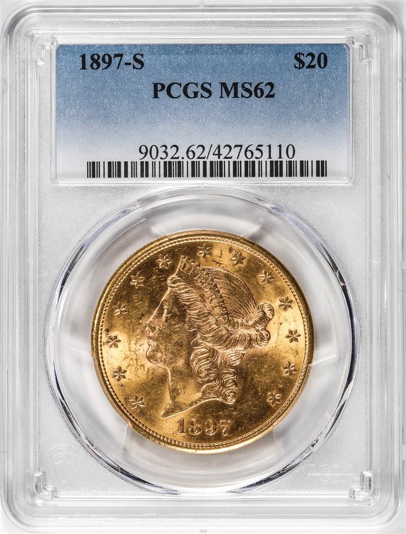 One 1897-S $20 Liberty Head Double Eagle Gold Coin PCGS MS62. PCGS Graded.