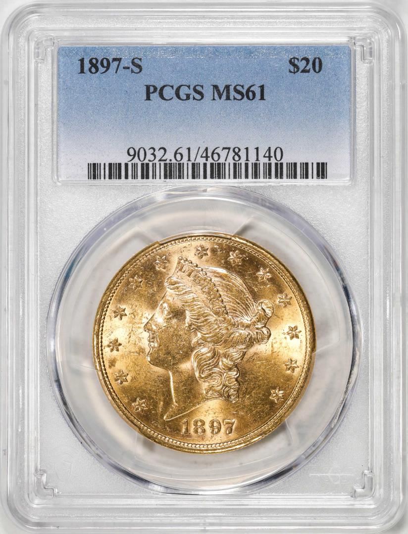 One 1897-S $20 Liberty Head Eagle Gold Coin PCGS MS61. PCGS Graded.