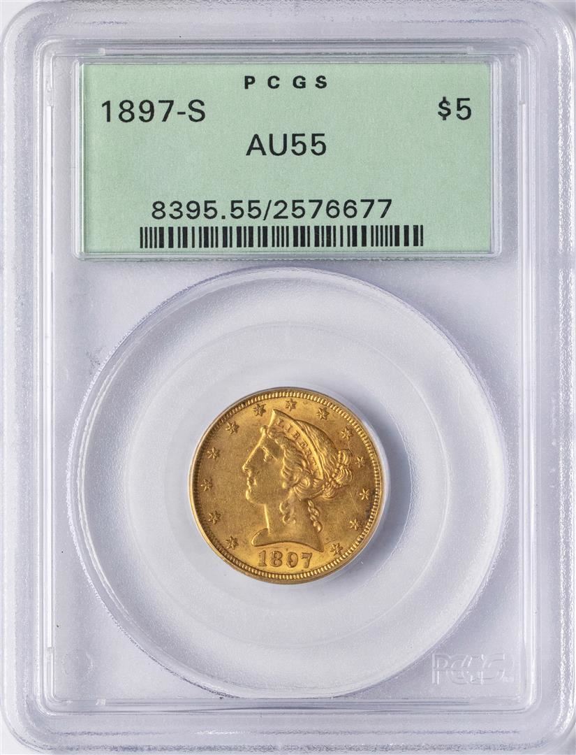 One 1897-S $5 Liberty Head Half Eagle Gold Coin PCGS AU55. PCGS Graded.