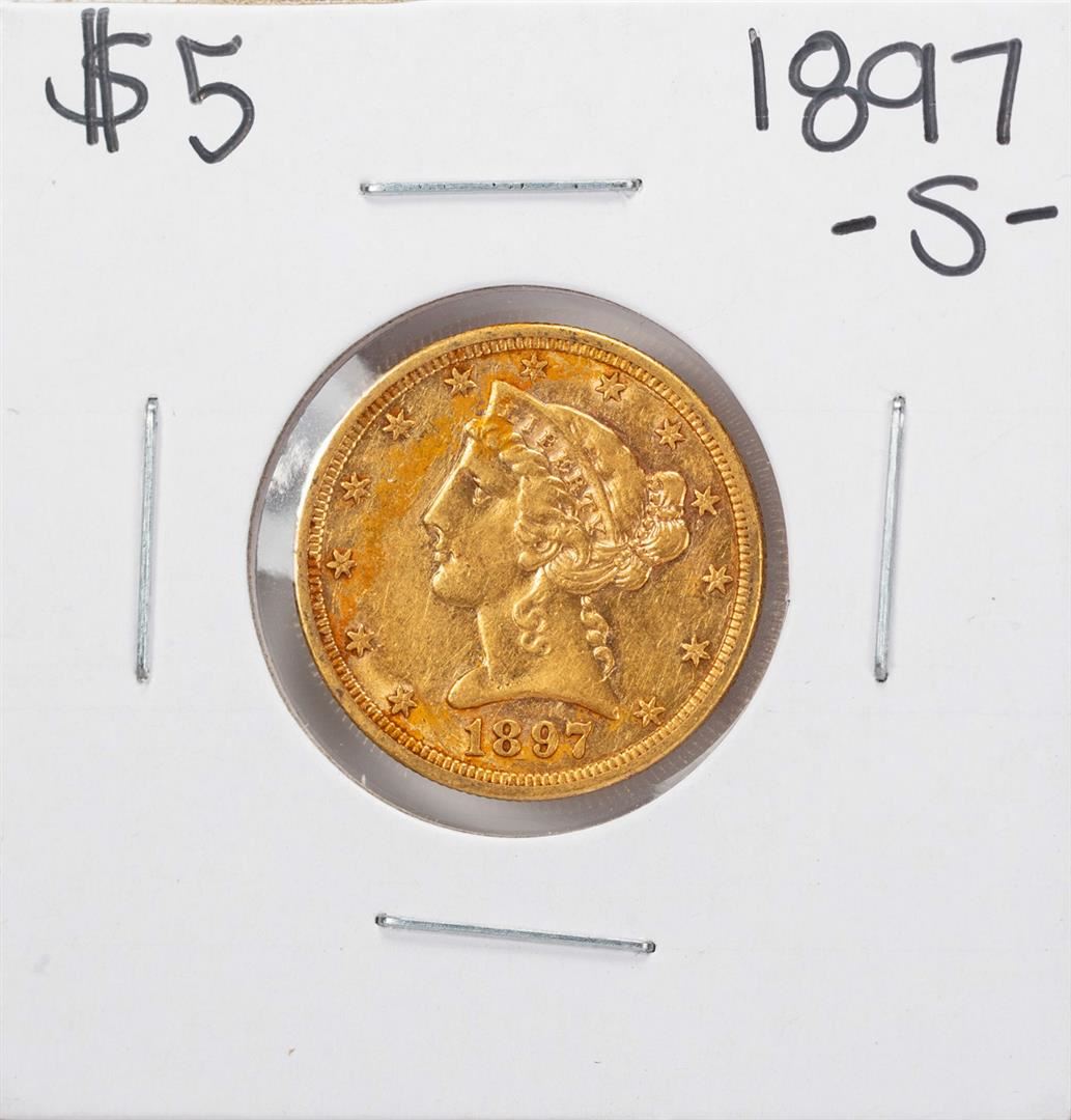 One 1897-S $5 Liberty Head Half Eagle Gold Coin.