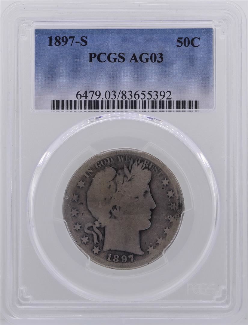 One 1897-S Barber Half Dollar Coin PCGS AG03. PCGS Graded.
