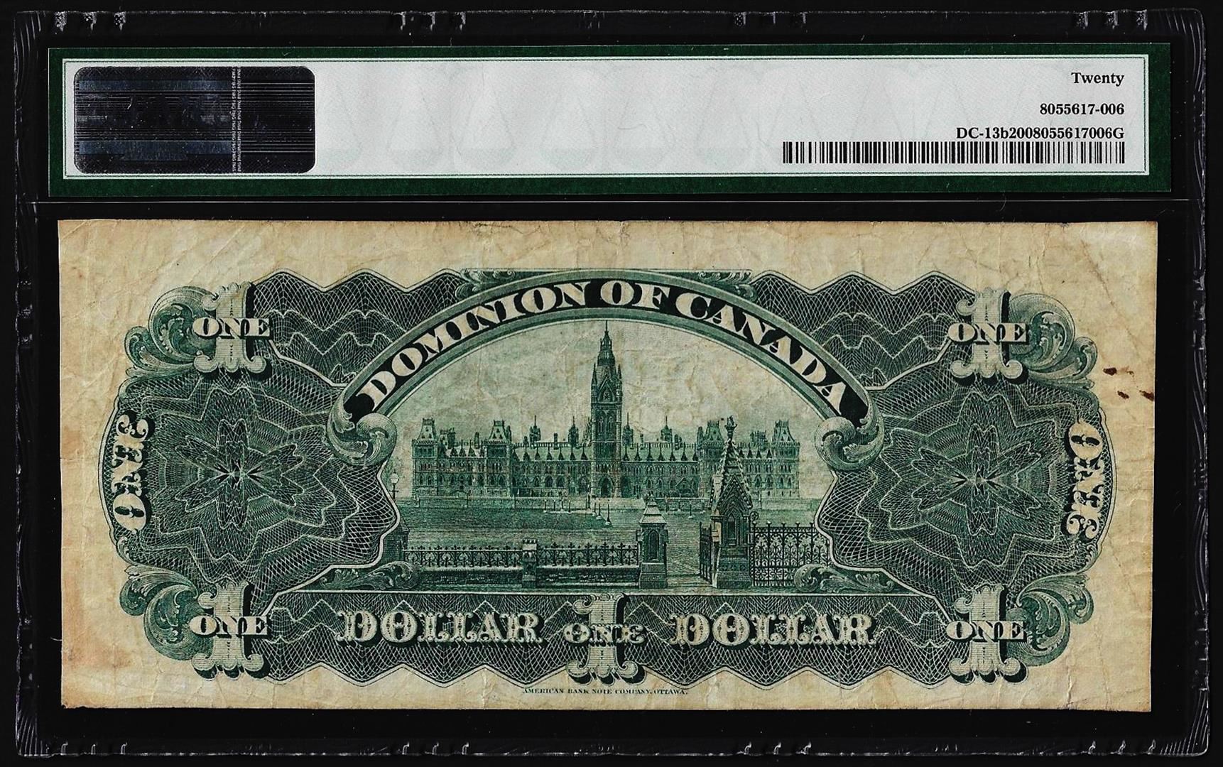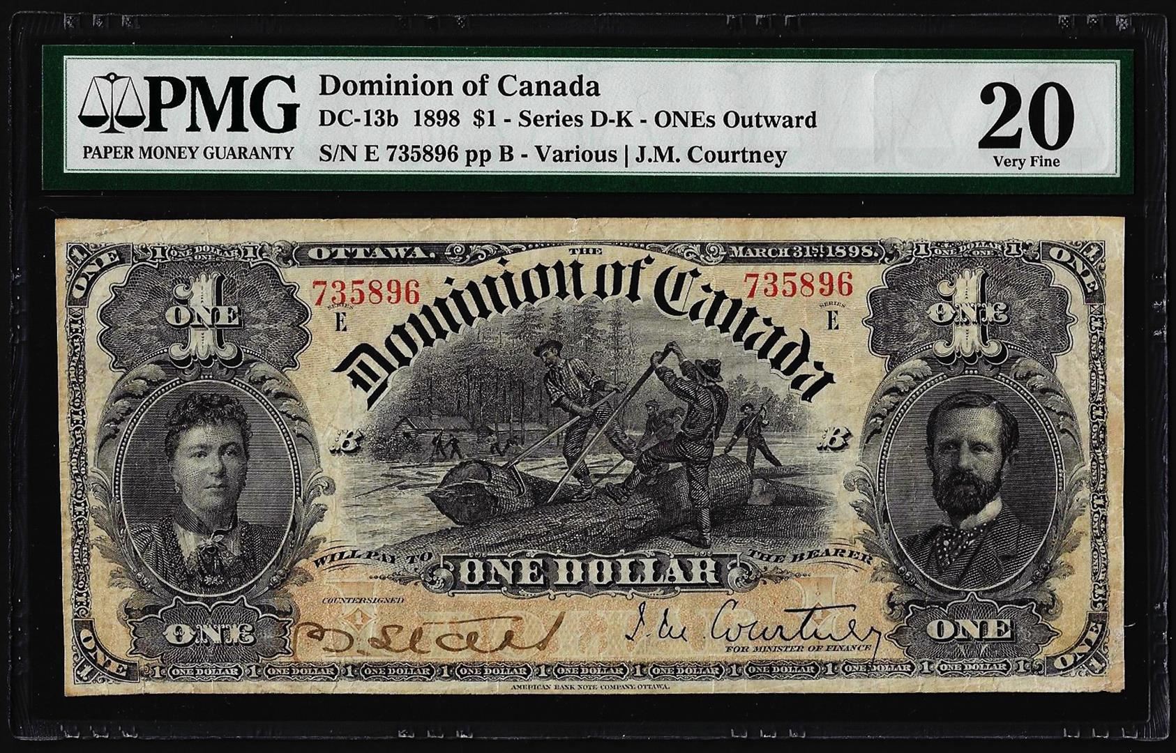 One 1898 $1 Dominion of Canada ONEs Outward Note DC-13b PMG Very Fine 20. PMG Certified.