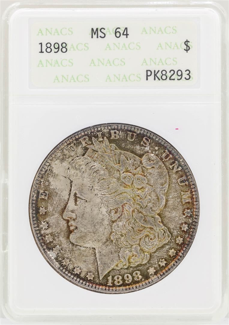 One 1898 $1 Morgan Silver Dollar Coin ANACS MS64. ANACS Certified.